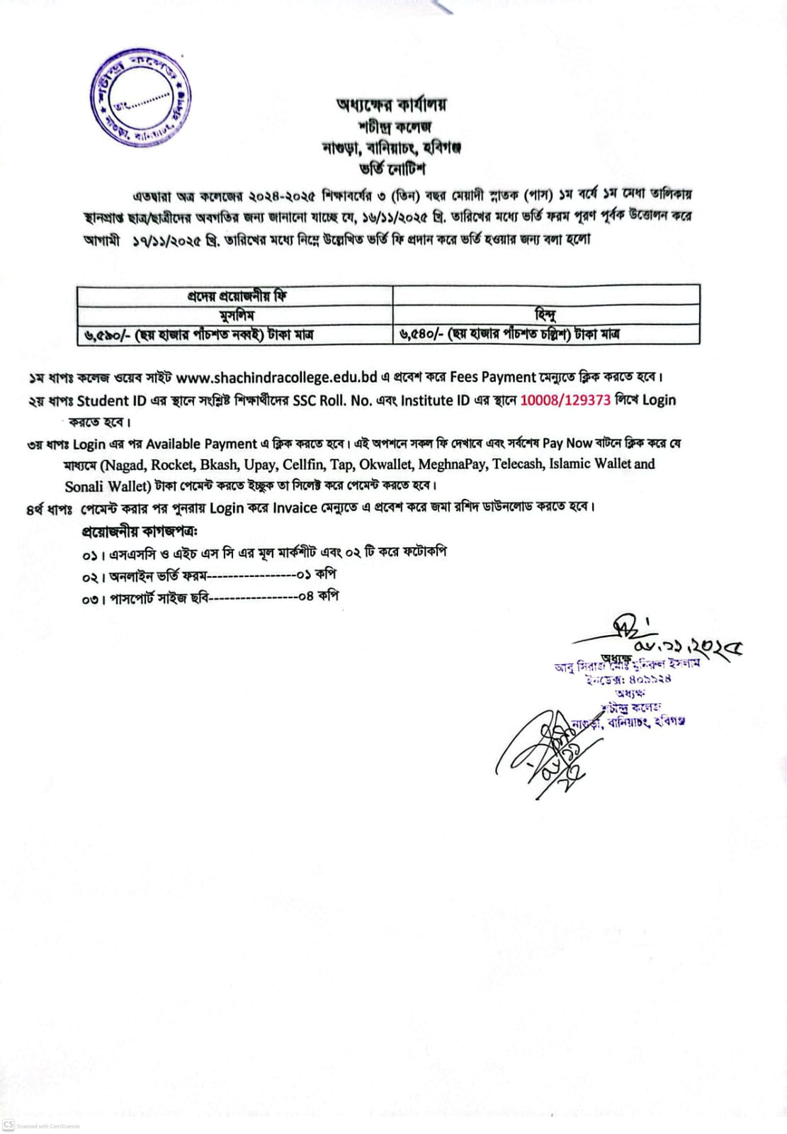 ২০২৪-২৫ শিক্ষাবর্ষে স্নাতক (পাস) ভর্তি নোটিশ