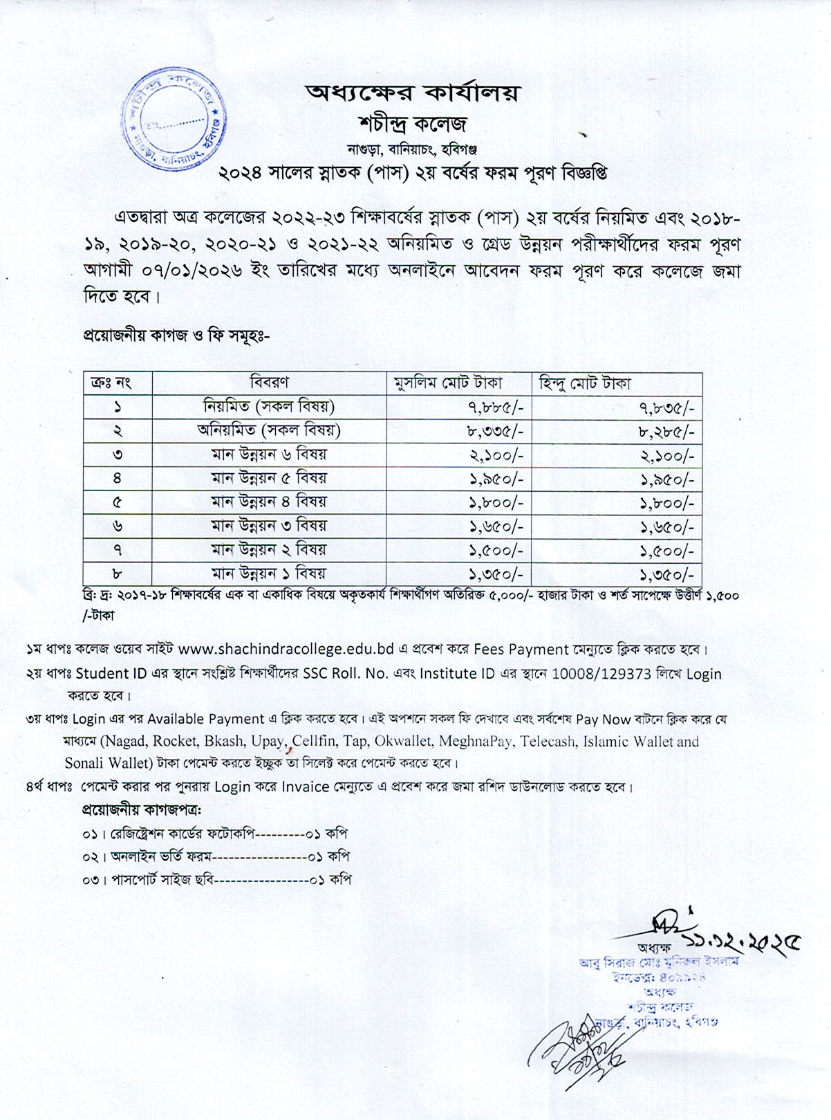২০২৪ সালে স্নাত (পাস) ২য় বর্ষ ফরম পূরণ নোটিশ
