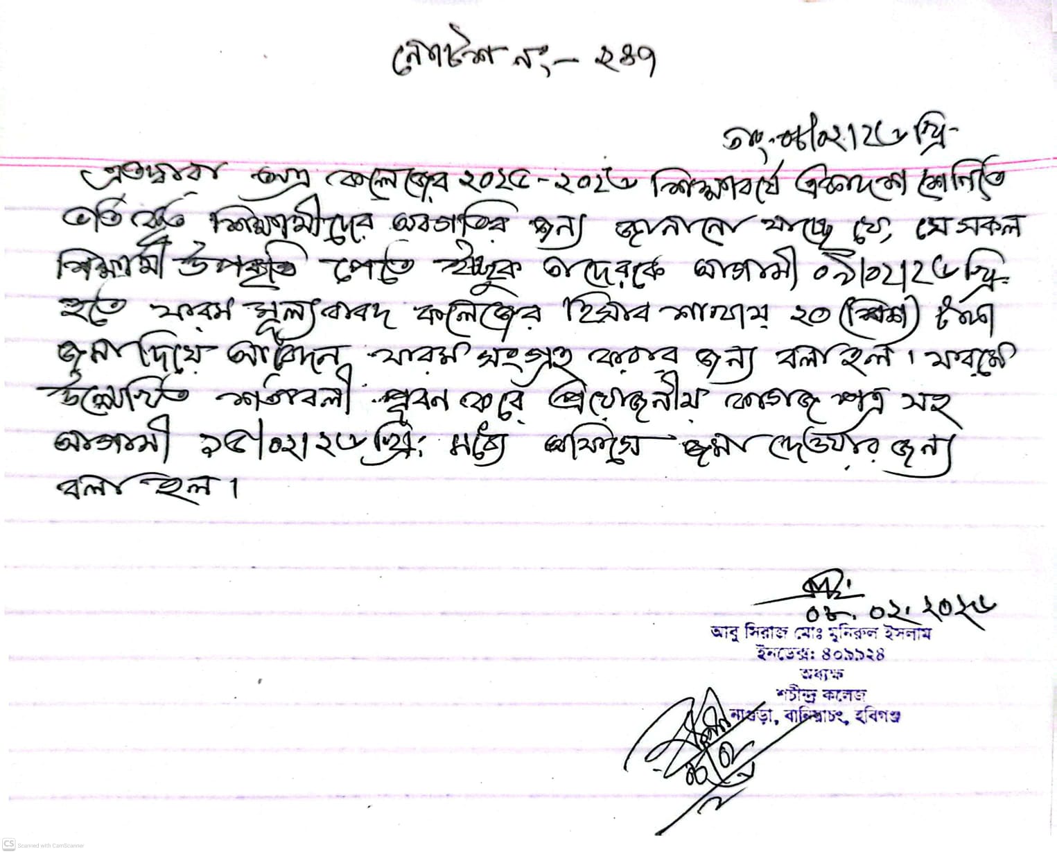 একাদশ শ্রেণির উপবৃত্তি নোটিশ