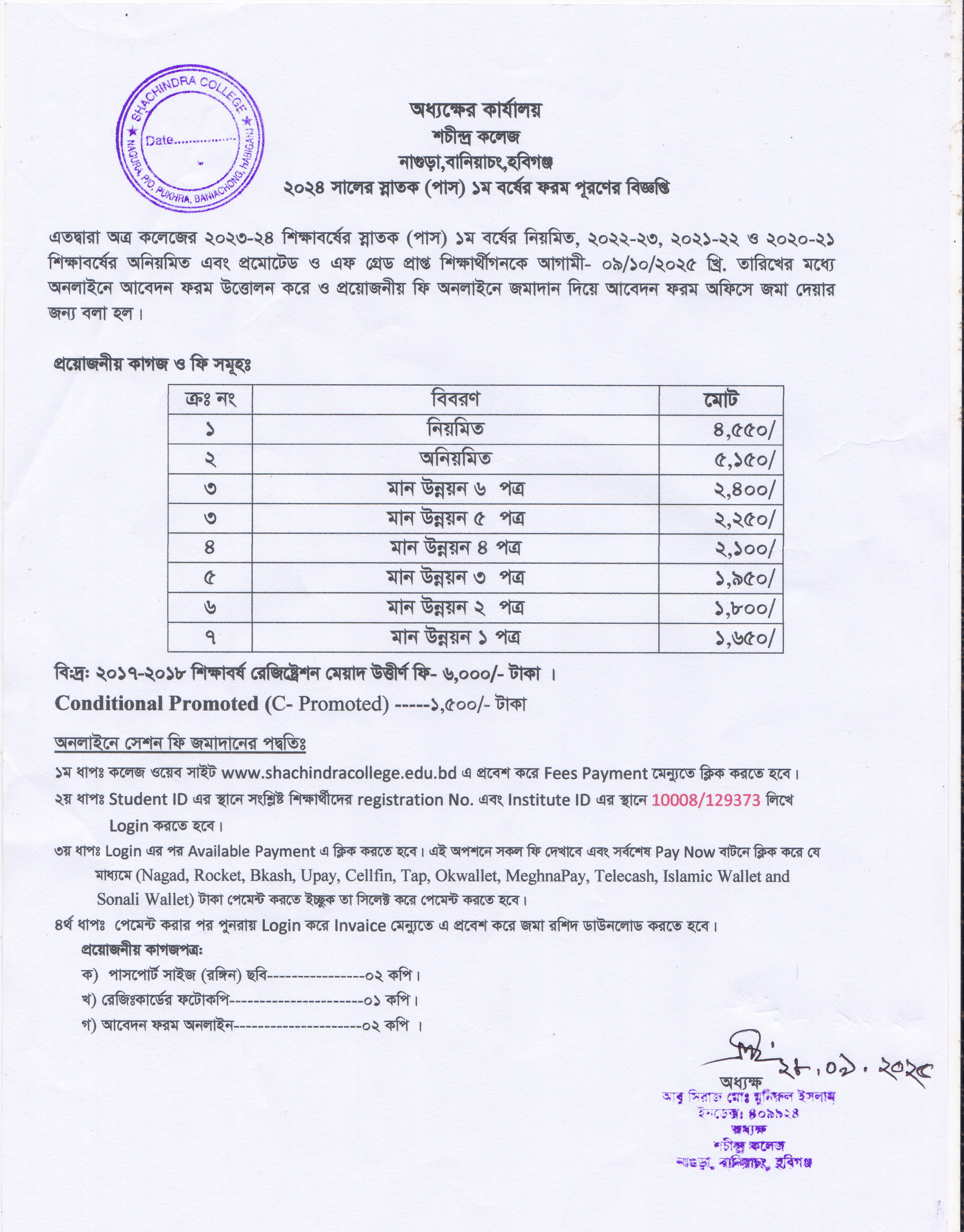 ২০২৪ সালের স্নাতক (পাস) ১ম বর্ষের ফরম পূরণের নোটিশ